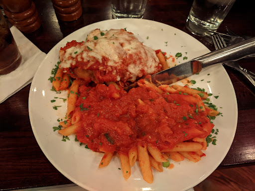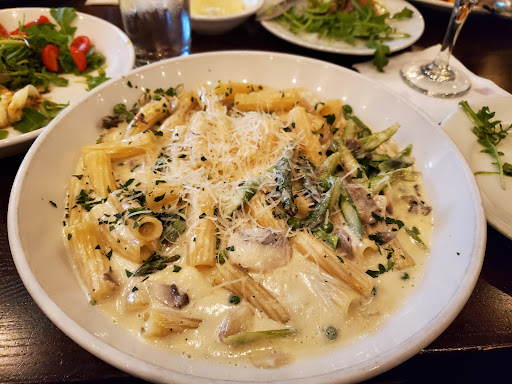 Good food, good wines, kid friendly. We had a nice meal meal here Saturday night. We had reservations for a party of 7 + a high chair. They first tried to sit us at a table that was barely suitable for 6 people so we spoke up and they moved us to another room with a much bigger table. The wine list was pretty decent and the table enjoyed a bottle of Pinot Noir which was delightful. One thing I cant stop thinking about is the fresh warm focaccia bread that came in the bread basket. I had the shrimp risotto with asparagus in a creamy garlic sauce which was a huge portion probably enough for 2 people. It was so rich and creamy and exactly what I had a taste for. My husband always gets the veal parmigiana. It too is a huge portion but also very tasty. We have also ordered take out from here and have never had a problem.