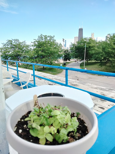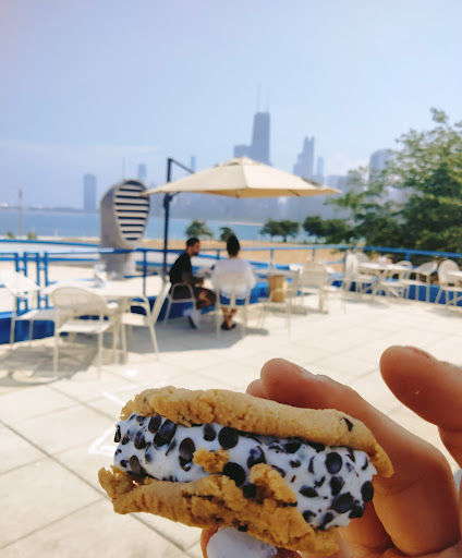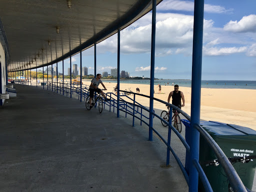 Great place to hang out while at the beach. It overlooks the North Avenue Beach Crowd below. The place itself has loud music which brings loud people. Theres a decent beer selection, but the food is more along the lines of cafeteria food. However, it probably is the best food option in the area.