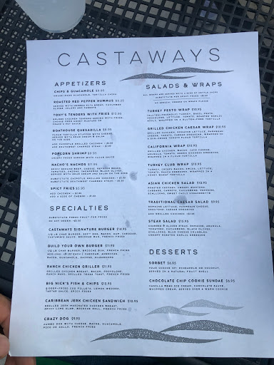 During the summer, Castaways is a good place to chill for a bite and a few drinks, if youre hitting up North Avenue Beach, or taking a bike ride or run down Lakefront Trail. The food is good American-style summer eats: expect some fried dishes, hamburgers, sandwiches/wraps, salads, and a good selection of appetizers. From my experience, the hummus is tasty, and my Jerk Chicken sandwich was juicy. They also have a decent selection of blended cocktails to go along with the beach/vacation theme. Service is usually reflective of the amount of people. If youre in a rush, this may be a spot for a quick bite. This place is somewhere you want to be when youre taking it easy with your food and drinks, and sitting back and enjoying the summer. The unmissable boathouse is located on North Avenue Beach, and Castaways is located on the top deck. This is obviously a convenient summer spot, so it can get crowded. During the weekend, the place can be jammed-packed and look like a huge vacation party spot, especially when they have DJs or entertainment. During the week, you may not get as feisty as a crowd, but either way, its great for people-watching.