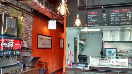 Yummy. A must to go place on Maxwell street. The bottom line is: Indian food in Mexican grill style. If you are into Indian cuisine and you like Chipotle or Qdoba, I bet youre gonna love it. They have plenty of options for vegetarians and nonvegetarians both. First you get to choose what kind of bowl you are looking for, then choice of meat, rice, beans, sauce, dressing etc etc, just like Chipotle. They have masala chai too. The best Item I had there was Samosa Chat. Its a snack made out of basically samosa and other dressings and sauce and it would feel like heaven with that masala chai (tea). Awesome food for affordable price. Last but not the least, the ambiance is awesome, a little cozy. No seating outside though. So, if you are interested in trying indian food for the first time, I would suggest start with this one, and you wont regret. Tip: Tuesdays they have $2 bowls between 3 and 5 pm.