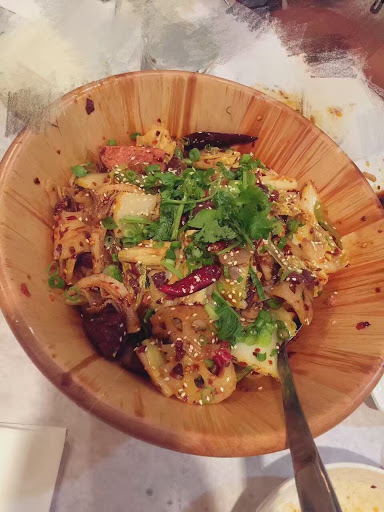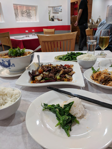 Awesome Sichuan (Szechuan) Chinese food. Chengdu by the way is the capital of the Sichuan province, hence the name. The place is rather cozy affair but its not cramped. The three times Ive been at least half the clientele was Asian, a very good sign that youre getting some authentic food. I was lucky enough to visit China a couple of years ago and this is definitely the closest Ive gotten to authentic Sichuan Chinese food since my visit. Service is pleasant enough if rather curt, and theyre normally quick to take your order and refill your drink as needed. Some people may take it as slightly rude how all business A lot of the food is very spicy, though not in the same way a buffalo chicken wing or Mexican food might be spicy. Many dishes, like the Dry Chili Chicken, make liberal use of both chilies and red Sichuan peppercorns that give the food a spicy, mouth numbing taste thats rather unique compared to other kinds of hot spicy food. They do have less spicy, and non spicy dishes, but they generally pale in comparison to the authentic dishes. Dishes are generally meant to be shared, the idea is to order a few and then split them amongst your table. For 3 hungry guys, 3 protein dishes, a vegetable dish, and some white rice is about the perfect amount. I havent had yet had the hot pot, but I certainly mean to next time I go. Id definitely recommend the Twice Cooked Pork with Pancake, which is pork belly thats sliced thin and blanched then stir fried in a spicy sauce with leeks , bell peppers, celery, and pieces of savory leek pancake. The Dry Chili Chicken and Dry Chili Beef with Celery are also very good, but Id recommend only one of these type of plates per about 3 people so as to not overwhelm yourselves with spice. The Sichuan String Beans are also really tasty, as is the eggplant dish. The General Tso Chicken that my less spice loving friend ordered was just okay. Good for a nicer Americanized Chinese place but again it pales in comparison to the more authentic dishes. Awesome place and definitely worth checking out.