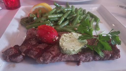 The first thing I noticed when being seated was the mauve colored cracked tile on the floor. Next I noticed that the runner mat was taped to the floor with red duct tape. I sat down with my girlfriend and ordered a calamari appetizer. If youre dining alone order three. The appetizer is literally gone in one bite. Next I ordered a New York strip that came with pomme frites. If you dont know what pomme frites are theyre thin cut french fries cooked in vegetable oil. Really fancy, not. The steak was not quite a half inch thick. Something you would get at Dennys if you ordered steak and eggs, or a local bar if you ordered a steak sandwich. I asked the waiter if the meat was prime and he said yes. NOT. The price for this entree was 24$. Ive never been to steak n shake but Im sure you could eat this same meal there for 5$. I have never felt so taken advantage of at a restaurant in my life. That was yesterday and I still cant believe Chez Joel has the audacity to call themselves a restaurant. ABSOLUTELY TERRIBLE FOOD AT OUTRAGEOUS PRICES. I left the restaurant and went across the street and had a burger. That was pretty good. My recomendation is zero stars.
