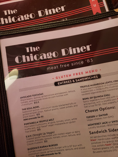 I recently am trying to make the transition to veganism and Chicago Diner is an awesome spot to try new dishes I didnt even know were possible to make without animal products! I had the Vegan Mac & Cheese and a Reuben which were both fantastic. To finish things off they have some out of this world vegan shakes and desserts! Not only is the food delicious, but the service kept my water filled and payed attention to whether or not I wanted or need anything. On top of that the decor and atmosphere send you back in time from the moment you walk in! Whether youre looking for a new spot to try some really tasty food, want a place to go with your one vegan friend that you can never seem to find a place eat with, or want to travel back in time to the sound of milkshakes being made and jukebox music being played Chicago Diner has got you covered! I cant wait to come back and treat myself to some awesome and more delicious food!