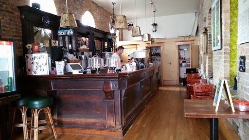 The building is beautiful with wood floors and open brick. The sandwiches are fresh and delicious. Coffee is great and they offer a wide variety of other drinks as well. Highly reccomended.