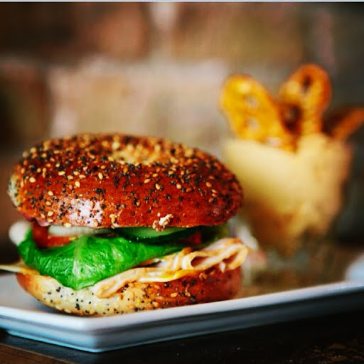 Study space galore! So much sun, space, and delicious I Have A Bean coffee. Try the cranberry mustard for a twist on a classic bagel sandwich.