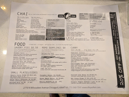 I am an Indian food and tea junkie. Extremely pleased that Chiya Chai joined Logan Square. The tea selection is amazing and the food is fresh, expertly prepared and great tasting. The owners and the staff are knowledgeable and very friendly! The decor and seating options are very inviting. Love this place!