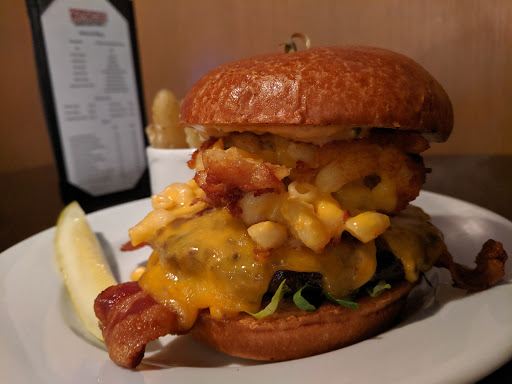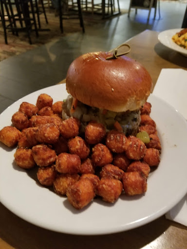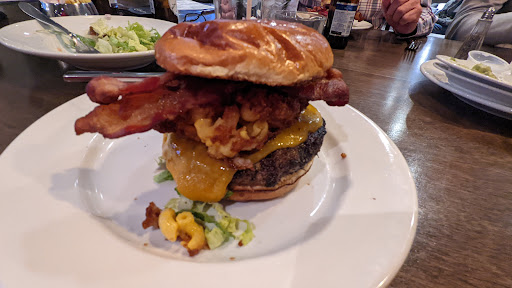 Love this place. Very inexpensive good food for a hotel sports bar. Got the 7 oz. burger topped with fried jalapeno mac n cheese patty, and sun dried tomato, chipotle aiole. Incredible! Have not had anything I didnt like in the 20+ times I have stayed at the Holiday Inn where this is located.