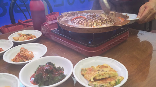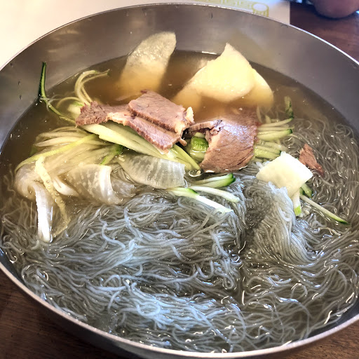 Great service and amazing food. They have a very different take on beef bulgoglgi that requires cooking in a broth. That near was so juicy and sweet, I could have eaten just that and rice for Weeks. the store is also known for nang myun which is a cold noodle dish. The noodles are made in store and are extremely fresh, though they might be a little too spicy for some people. The old man that wears suspenders who runs the store doesnt know much English but hes an absolute delight and was very helpful in choosing food for us when we didnt know what to order.