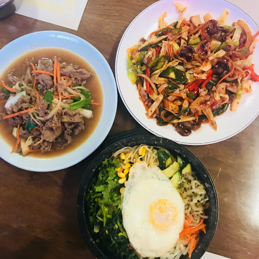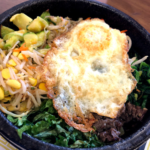 Good for a good price! We got the galbi bimbambap and the japchae! I loved the banchan at the beginning (not the typical ones I normally get) especially the seaweed soup and the chilled noodles. I loved the japchae here and the galbi bimbambap was pretty good as well after we added the red pepper sauce though I didnt find it to be super extraordinary! The rice comes out nice and crispy from the stone pot :)