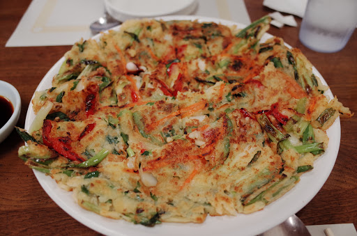 Overall: Authentic yet tucked away, this place is easy to drive by without noticing. Youll be sorry you did, because its worth every slurp of noodles youll get. The good: Hole in the wall in a totally rad kind of way. This is where the locals come and the food shows. The seafood pancakes were perfectly fried and not overdone and contained generous chunks of fishy goodness. The cold noodles were interesting and well flavored, and the portion sizes are appropriate. My friends seafood soup still came out boiling...the real deal. The owners barely know english, and thats totally okay. Adds to the experience. They were friendly and nice. The not-so-good: Someone in the party is allergic to mushrooms, and the bulgolgi she ordered didnt say it contained mushrooms. Alas...Also, I got the cold noodles and they were the last time come out by a long delay. Water was infrequently served. A little expensive for what it is... Atmosphere: 8/10 Service: 8/10 Food: 9/10