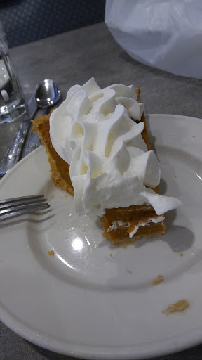 The first thing you see when you walk into Dappers is the wonderful dessert case. Its like seeing a trailer for the Empire Strikes Back before you even watch A New Hope. You kind of have to ignore it or else youll be staring at it like Hypnotoad is embedded in the tiramisu. Dappers has been around for a while. When I lived in Addison it was one of the go-to places in order to avoid hanging with chain smoking goths at Dennys. Back then it was a greasy family restaurant, but after it was made over it looks pretty classy. The menu is pretty huge. I only ever used to go to Dappers for breakfast. They have great french toast and the coffee is of the Kona blend. A great way to start the day. Admittedly Ive only been here for anything but breakfast once. I ordered a BLT, which came with some some fat cut french fries and a bowl of potato soup. You cant really screw up a BLT... actually yes you can. But Dappers doesnt, which earns it an endorsement from myself. Theres no dessert menu at Dappers. Instead you just mosy on over to the case and take a look at the large selection of pie and cake and pastries. Last time I was here on Pi-day so I had to go with the pie. I went with coconut cream and got another slice to go (i.e. dessert for my girlfriend).