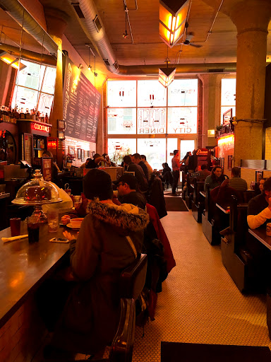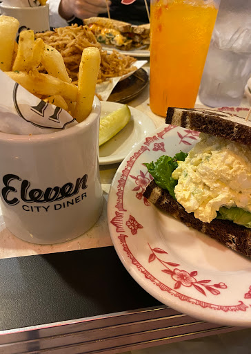 We just found the Eleven City Diner in the Chicagos South Loop by chance today. If you love cool diners with great food, Eleven City is a five-star spot. The minute you walk in, you know you are in for something different. This is not your usual deli or diner. It a full fledged delicatessen - Jewish-style. You have a real deli shop counter and old-style candy store on one side, and an all-american diner with comfy booths and a long single seat counter on the other. It even has a full bar and an in-house soda jerk Classic American swing and blues have you tappin as soon as you walk in You really feel like you are going back to another time. A good time! So the hostess seat us in one of the booths. Bloody Marys and Mimosa to start. Excellent!! The menu had about every thing you would ever imagine a classic delicatessen would serve up; sandwiches like "The Shappy” Salami Sandwich, the "SCHWARTZY" - Smoked Beef Brisket, and the "Blank Blank Special". To early for a sandwich, I had "Ritos Hoppei Poppei (or three scrambled eggs and with fat slices of salami, peppers, onions, and potatoes. It filled the huge plate. Toast, jam and more potatoes on the side. My friend had something called the "TOM WAITS 2A.M. BREAKFAST 1987." It was like a meal for two (Youre a hog, Pete). Lets just say we got our $$ worth (yeah, its a little pricer than the greek pancake house, but its worth it) Our waitress was great and on top of the coffee. The owner came over and introduced himself. When I came here to write this review I read some of the other reviews that were less than kind about this guy. I really dont get it. Brad Rubin was really interested in our take on the place. You could tell Brad is really into the whole jewish deli guy thing: Real passionate and true foodie. Brad is guy who is really into making sure his customers are loving the whole experience. At least that is my take. He took the time to answer all of questions regarding the idea behind Eleven City and talked about the plans for the outdoor patio later this year. I really have to say, Brad has done great job making this a one-of-a-kind spot. Cant wait to come back and try the Woody Allen. Oy!!! (I had to say that once) P.s If you go to the mens room, you have to check out the framed napkin with a great quote tacked on the wall. I just leave it at that...
