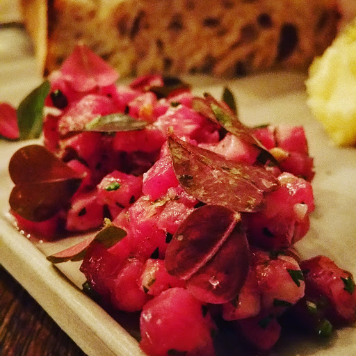 I have visited Elizabeth twice in 8 days, first for a Sunday brunch then for a Sunday night family dinner. To borrow heavily from my dining companions words: I could go on and on about all the reasons why I love this place. The food is always delicious. The energy is unpretentious but still at a level of class that is so dignified. Its clear that Iliana Regan is not only a stellar chef but a humble leader who empowers those around her. She is a genuinely good person who has never lost her passion for food, sees the raw power in bringing people together over a meal and who has a team around her that embodies all the values she demonstrates. During brunch a week back Iliana took time out from the open air kitchen to greet guests. Her team never left our coffee mugs cold, and graciously fielded question after question about the delights we were eating, being so patient with our child like wonder. Last nights menu was created by one of the chefs on Regans team; highlighting Southeast Asian street food and inspired by his year spent living in a rural town outside of Laos. The flavors were bold, pungent and spicy. His food was the star of the night. liana washed dishes! One of the FOH staff shared stories about her kids. Tonya ran outside, into the frigid cold, to make sure we didnt forget a mini to-go bag...it was perfect. Thank you for reminding us that there is a community of people who stand for something with no compromises in execution of their art.
