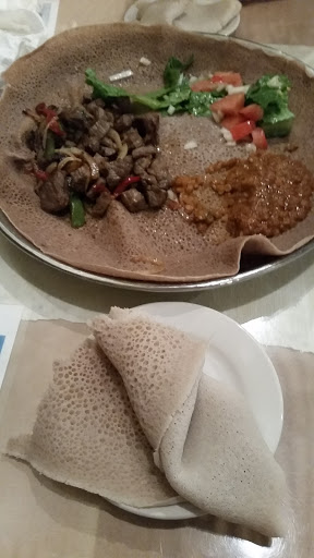 My wife and I were visiting from out of town and stopped by here on a recommendation from our taxi driver, who is Oromo. The food was perfect and asking the lines of what I expect from an Ethiopian place. Were from DC, which is home to the largest population of Ethiopians outside of Ethiopia, so I knew what to expect from the food and was able to impress some of the staff with my smattering of Amharic that Ive picked up. The tibs were on point and the misir wot was great, just the right amount of heat from the berbere. Since we were just here for lunch, I didnt get anything more exciting like kitfo or one of the platters, so the food and service would normally just earn Diamond a four-star rating since you need to be exceptional to get a five from me. However, this place stood out because they had all-teff injera, which was gluten-free, so that my wife could enjoy the great food with me, too. Very impressed and very happy with our experience here!
