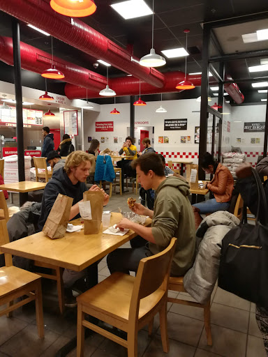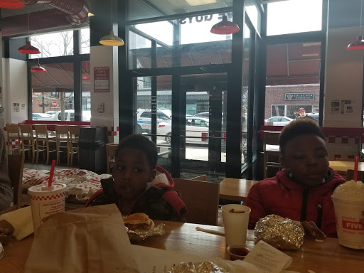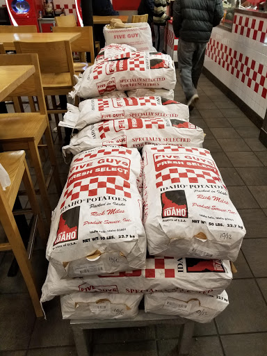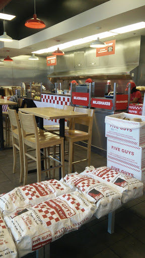 5 Guys has the best burgers Ive tasted! Not to mention their delicious fries. If you go, get the little hamburger, the normal one is the same size but has two patties.
