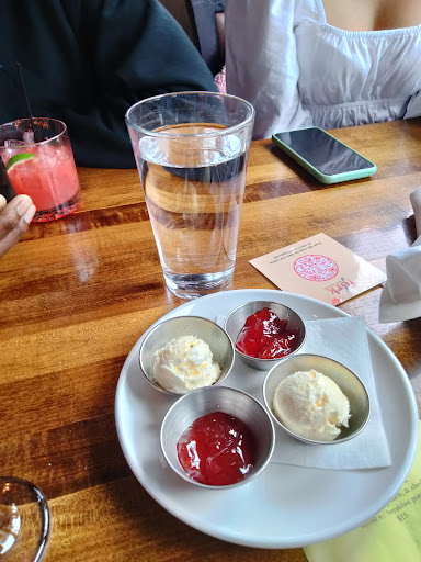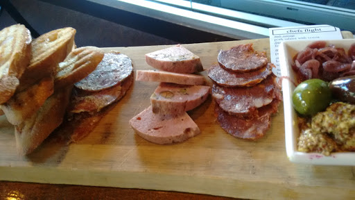 My only complaint is that there was a really bad draft from the front window--someone had apparently tried to fix this with black duct tape, but it wasnt very effective. So if you go this winter, ask to be seated elsewhere. Other than that, this place was wonderful! Great service, and the atmosphere is very fun and relaxed. It seems like the vibe they are going for is classy comfort food with a really good bar, and they succeed on all counts. For food/beverages: I love wine but dont know a lot about it, so I appreciated the flights and the suggested pairings with the desserts. Great opportunity to sample new wines. To eat, I had the mixed greens salad and french onion soup, both simple but really delicious. And for dessert--the lemon cake, which was a yellow cake topped with pears, plus a lemon cream that the waiter poured over at the table, turning it into a lemony tres leches. So good!! My date isnt a fan of wine, but no problem--they also have beer flights! His beef brisket was very tender, and the 23 flavor BBQ sauce was excellent. And for dessert, the apple pie was also delicious, especially if you love the filling more than the crust. It was essentially a jar of filling with maple ice cream and some crunchy crust artfully placed on top. Overall I will definitely go back, and with a bigger appetite so I can also sample all the meats and cheeses.