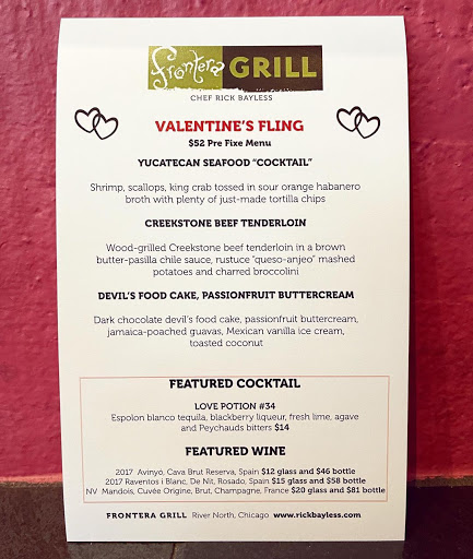 Ive wanted to try Frontera Grill ever since Rick Bayless won the first Top Chef Masters all those years ago. I finally got the chance on a mini family vacation to Chicago when we stayed at a hotel right around the corner, so we walked over and put our names on the reservation list to sit outside. The wait was initially an hour, but a previous reservation cancelled, so we were sat in perhaps less than 20 minutes. Our server, Albert, was very knowledgable about the menu and the drinks. He brought me and my sister delicious seasonal cocktails and recommended a fantastic sipping tequila for my husband who is a serious whiskey man. My mom has a pepper intolerance (they give her nasty migraines), and when she told Albert about it he was absolutely thorough that there wouldnt be cross contamination. He even alerted management to the issue, who came out and introduced himself (Jay) and double checked that her allergy wasnt as severe to air-borne contamination, and he worked with her to create a dish that would fit her dietary needs. It was above and beyond anything we expected, we just wanted to be certain no peppers got tossed on her salad, but Jay made certain a dressing was especially created so there wouldnt be any oils or seeds in it. Truly a testament to any great restaurant! Im vegetarian and there were plenty of incredible options for myself, and I loved the Wild Mushroom Mixotes I ordered. Even though that might have been enough, since we didnt do appetizers, my table split the desserts Mexican Chocolate Cherry Tart, Frontera Chocolate Pecan Pie, and Local Corn 3 Sweet Ways. Everything was amazing and you cant get it prepared like Frontera prepared it anywhere else. The experience was absolutely amazing and will be hard to top: 5 stars all the way! There will be a wait, but it is 100% worth it!