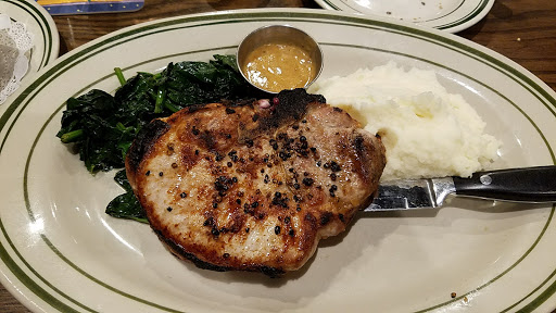 The service here is excellent. That needs to be said up top. Wait staff are alert, attentive, gracious and snappy. Wonderful. Obviously, the ribs. These are among the best ribs in Chicago despite not exactly being barbecued. Instead they broil the ribs to fall-off-the-bone tender. Often I can just a fork to cleanly remove all meat in one easy, gentle stroke. That is how tender and succulent the ribs are when served. Sauce is a little bland, but I am not a heavy saucer when it comes to ribs. The best thing on the menu is the spicy chicken tomatio soup! Perfect blend of spicness and tang without being overbearing in either direction. Very filling yet simple in actual composition for a soup. The pork chop Vesivo is also a delight. Very tender and juicy with a lovely amount of pan sauce and crisp veggies. Just awesome. We have very rarely been disappointed here in the food. From simple burgers to potato skins, jambalaya and simply roasted chicken- its always well made, seasoned and prepared even if fairly famialir.