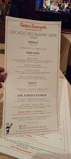 I ate at this restaurant was about close to 20 years ago and I was so impressed with the service the first time my girlfriends and I stepped foot in there. We were in Chicago doing fashion shows for a weekend and walking around to find a spot to eat and decided to find an Italian place to eat and at first we didnt know if we were allowed to go in because it looked like only celebrities eat here, but we werent turned away, we were given star treatment if nothing else! The food was Amazing! Never had to ask for water, napkins, food was hot and Awesome Good! Each time we go back to Chicago I make this one of my stops and tell others to find Franklin and Illinois and look for the brick building that says Gene & Georgettis Restaurant, you cant go wrong when it comes to good eating here.