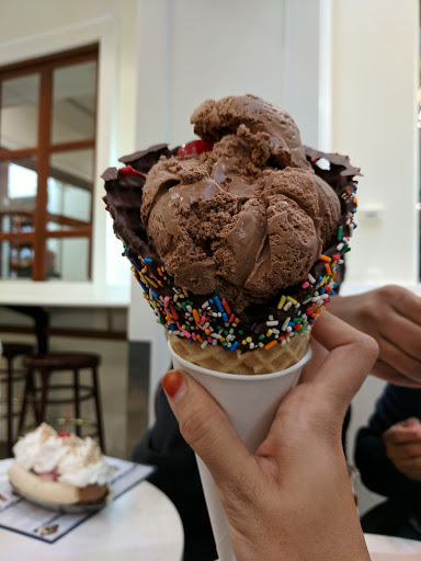 I cant say enough good things about this place. Love the location, I can stop by after a long day of shopping or for dessert after eating out or on my way for a walk to the lakefront. I love their chocolate malts! To die for! But then again so is the ice cream and hot cocoa! They are always giving out chocolate squares samples of all of their different flavors available for purchase. I dont like anything on my chocolates but chocolate. However, I tried the caramel chocolate: heaven! The service is super friendly! They once got our order wrong, no biggie. Told then it was fine. They promptly apologized and made a completely new order super quick. I was super impressed! Love the decor def gives u a feel of an ice cream shop from back in the day. Thats the best way I can describe it. LOL. Tons of different chocolate squares to chose from. U can buy a premade bag or make your own. Great souvenirs for anyone wanting to take a piece of Chicago with them. A place you MUST visit when you are in the area, you dont be diappointed!