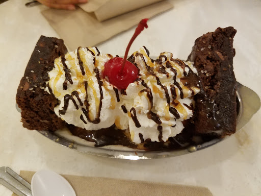 I dont know what other people get but the best dessert Ive ever had is there peanut butter chocolate Sunday! think of this... one layer melted peanut butter then chocolate then ice cream and repeated 3 times with nuts/whip-cream and a cherry on top. Perfection!.....They discontinued the best Sunday ever because of peanut allergies! Really!?!?! Cant a person with a peanut allergy not choose something with peanuts!!!! So does that mean we go into every restaurant and grocery store and get rid of peanuts!!! Ridiculous! 0 stars if I could!!