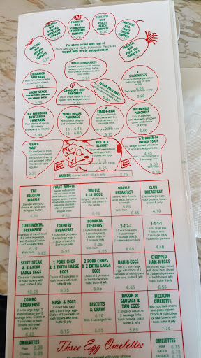 This is such a nice place, old school dinner. We had pancakes with chocolate chips, ham, French toast, sausage, bacon, eggs and 2 cups of coffee (with refills) and we spend like $18 (without tip). They have something for everyone, totally recommended. We will probably go back. One thing... This place is CASH ONLY!.