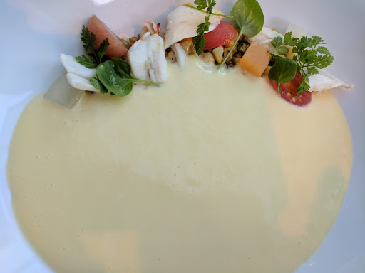 Service was somewhat slow, but friendly. Views were nice. Presentation of food was ok, but overall we all felt the dishes were trying too hard to be creative, rather than focus on highlighting the merit of the good without overdoing it. The dishes were a mishmash of assorted flavors not all complimentary to one another, and did nothing to enhance the food. Food was overpriced, drinks somewhat disappointing. Overall we did not enjoy our experience and will not be back.