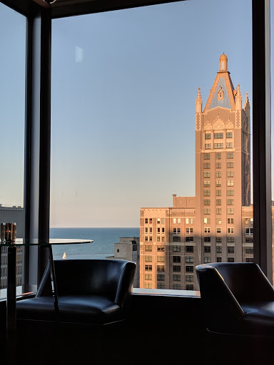 Good food and service. Not cheap, but not outrageous. Located on a veranda of a Northwestern medical building in the heart of Streeterville. Expansive views east, south, and west. Been twice and enjoyed it. Significant drawback alert: service on the veranda ends in the evening around 8. That means self-service by heading inside to get drinks and schlep them back outside. That got old at night. Service outside is sketchy even when open. Significant drawback alert 2: entire veranda closes too early.