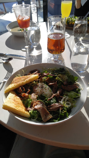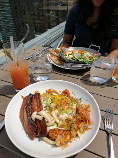 Awesome view of Lake Michigan and City of Chicago. Simple menu, food was well thought out and prepared. French toast was delicious! Drinks were done well. Full bar, scratch made, no mixers. Odd entrance as the lower half of the building is a hospital. Beyond this, a must try at least once...especially in the summer.