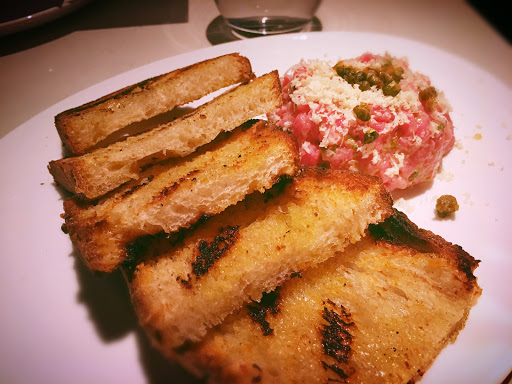 This place has been receiving a lot of hype. I went there with a friend for lunch but I wasnt overly impressed (CAVEAT: I DID GO FOR LUNCH). I got the steak-frites and I loved it. The steak was very well-prepared and the frites are lightly dusted with cheese. YUM. The whitefish tartine was good - not GREAT. For $11 -- it was pretty expensive. Tasty, but I wouldnt get it again for that price. Its kind of confusing since its nestled in a medical building on the 18th floor. The view isnt spectacular though but I do want to come back at night for drinks!