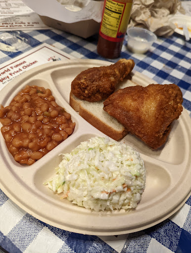 Amazing fried chicken, this is one of the better fried chicken places Ive tried. I got the 2 piece breast and one wing, but even for a big guy like me, that was a bit too much food, I couldnt finish it. The chicken is juicy and perfectly crispy on the outside. If I lived closer to it and didnt have to go out of my way, Id be at this place at least once a month. Their fried pickle and okra was also amazing.