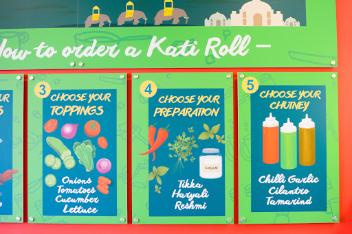 Fresh Indian "fast" food, reminiscent of the format of chipotle with the toppings on the line. You can choose from spongy paneer, juicy chicken, lamb or chickpeas for your protein, then wrap it in a Kati roll (a big roti like wrap), pop it in a rice bowl or make a salad. There are several sauce choices from the minty green chutney, to spicy tikka. Theres flavorful masala fries with cilantro mayo as a side, basmati rice or (yum) buttery dal. It was fresh and affordable for sure. The owners were super friendly as was the staff. Love it!