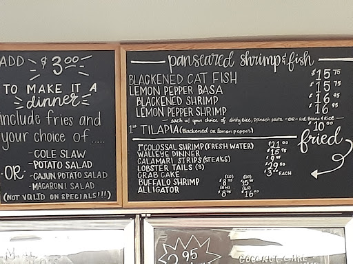 I had the fried catfish dinner with red-beans and rice. french fries and the cajun potato salad, everything was very good the fish was fried nice and golden not over cooked the red-beans were good a little bland but still good, potato salad only low point but i am kind of a potato salad snob so i cant hold that against them to each there own on mayonnaise based salads. in house tartar is also a must try. Owner is a super nice guy always wants to meet the new customers.
