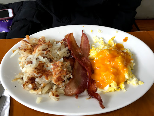 The place its ok. It was me only and I asked to be seated at the bar area, the server (or host?) didnt seem to be interested in helping me out, pretty much handed me menu and that was it, as a first timer I didnt feel welcomed. She handed me the menu and didnt even offer me coffee or tea or something as other servers do at other breakfast places. When I asked for coffee her response was "oh Im sorry". The breakfast was good, I had the regular eggs and it came with sausage, toasts, and hashbrowns. Under $10. By the way, if youre short dont seat at the bar, the stools are not high enough, I am 57 and I felt very weird haha. Parking is very inconvenient, theres no street parking. However theres a parking lot on the same street and it is pretty cheap. Other than that I might come back to this place. I couldve given 5 stars but the service wasnt that good after all. Thanks.
