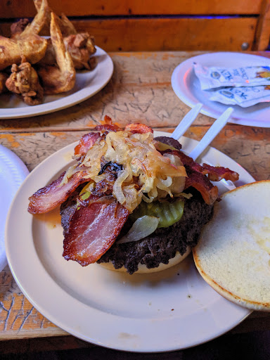 Eat the burgers they have huge piece of bacon , its a chill local sport bars
