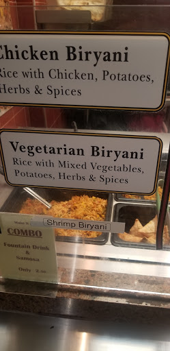 Ive gotten the Chicken Biryani several times over the last year and good every time, nice to have the yogurt sauce to temper the heat, and I like their green chutney (just ask for it) with this as well. Friendly staff, nice to have an Indian Food option in a food court.
