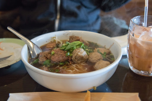 Authentic Thai street food experience with metal cups, interesting straw vessels, and comfortable indoor seating. Restaurant is on the smaller side with about 7 tables. All the food spelled terrific, utilizing more spices typical to Thailand than the average Thai American restaurant. The menu is also more expansive rather than just dry stir-fry noodle. Loved the green papaya salad and tom yum soup I had. My friend was not very hungry and still finished every last piece of his noodle soup (#2). Service was fast.