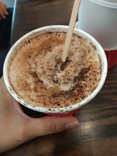 Very clean place and helpful staff. The London Fog and the Iced Chai tea Latte were excellent drinks. They make their own naked goods and the peanut butter cookie sandwich was delicious. Their syrups have great flavor to them and are not overly sweet. I would take them over Starbucks any day.