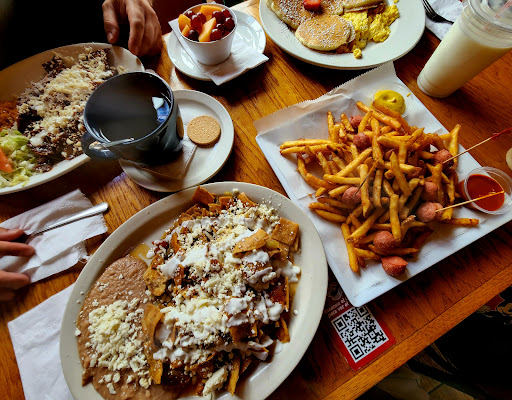 esta mañana fui a desayunar que delicioso unos chilaquiles a la diabla para mi esposo y yo un omelette mexicano que delicia gracias buenos cocineros dios los bendiga y ati bocho por poner en alto a nosotros los hispanos