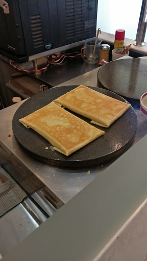Fantastic food, service and ambiance! On a cold afternoon in Old Town stumbled in for a late lunch. After much deliberation (and patience from behind the counter) I ordered the savory crepe of the day. The crepe was perfect - hot crepe filled with egg, cheese, onion, tomato, bacon and ham!! Would definitely come back to try a sweet crepe next time. In case you like to know more about your coffee, I learned that they brew Intelligentsia coffee.