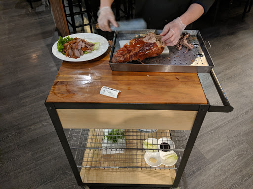 The weekday lunch buffet is what drew me in at first - great deal, great food - so decided to stop by for dinner with some colleagues one day. The hostess recommended the Peking Duck while we were waiting for a table, and boy are we glad we tried it. Succulent and satisfying and cool presentation by the chef, much better than the ducks you find at other Chinese restaurants. My Chinese co-worker certified its authenticity as well. It came with lots of sides - definitely worth the price. Other hits were the dry chili chicken, lamb cumin powder, hot & spicy pot, lemon crispy shrimp, and soup dumplings (best Ive had!). Our server gave great recommendations. If youre an adventurous eater and/or a fan of spicy food craving authentic Chinese cuisine in an upscale yet comfortable ambiance, you wont be disappointed. Wish they had a happy hour. Ill be back Lao and Im telling everyone I know!