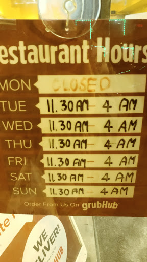 | Working: | Closed 11:30AM–4AM 11:30AM–4AM 11:30AM–4AM 11:30AM–4AM 11:30AM–4AM 11:30AM–4AM |