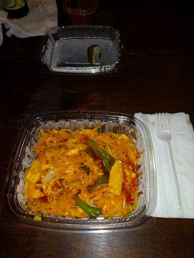 The service is so fast! They open at 9:00 p.m. so its a nice place to stop on my way home after a late night. I love the yellow thai curry and the spring rolls. Its right by my house so its my first stop shop when Im looking for a quick bite of Thai!
