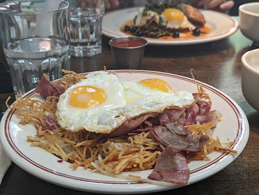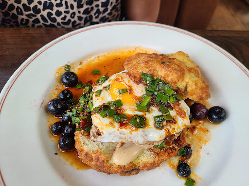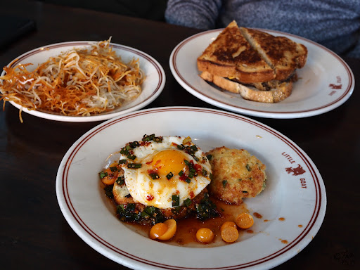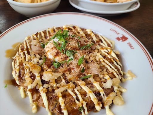 So if you come to Chicago every blue moon and that ridiculously hard table at Girl & the Goat is hard to come by...meet its hot sister.....Little Goat Diner....HAYYYYYY! After glowing reviews from numerous friends, we had to come try this place out for brunch. So food wise, what should you order??? EVERYTHING. We came in with a small group of us. I secured reservations since I knew there might be a mad rush for this place. We were seated within 10 min of arrival. Scooped a booth next to the window with a place to hang out jackets - love it! For food we ordered: the parathas burrito (not really a burrito..more like a naan flat bread, but go with it), biscuits and gravy, omelette, this little piggy went to china ( laugh all you want - its damn good.), and the hot crab dip. I have to say the "This Little Piggy Went to China" really knocked it out of this world! The not so amazing part was the crab dip...too fishy tasting for my taste-buds and didnt blow my socks off like I was hoping for. Heads up - the dont offer to change the way the eggs are cooked, learned that after trying to alter the sunny side up stuff. The service was friendly and did a great job looking after us given the huge rush. I was really glad we came and the food was definitely worth it!!