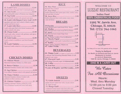 The veg dishes are delicious and spicy! Best samosas ever. Handmade and delicate pastry, never frozen. Great for a long dinner with friends. Can be slow service, but friendly. Go to Taste across the street for a $10 bottle of wine to drink with your meal. I read the rest of the reviews, and agree that Luzzat can be a tiny bit inconsistent. I have been there many times in the last four years and once they forgot to add salt and one time I got a chicken dish I didnt order with my take out. Its true that the packaging could be better, and the curry is a bit oily, but I have had great food from Luzzat and know a lot of other people who love it. The eggplant and okra dishes are my favorite, as well as the palak. I have been underwhelmed by their meat which can be too dry (chicken) or lamb (too salty). Stick to veg classics.