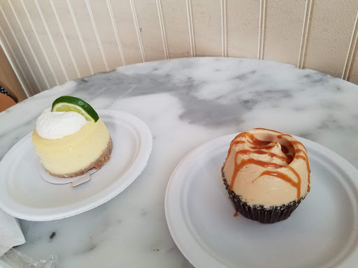 Bought two small and very overpriced cupcakes this morning. I got the red velvet and coconut cupcakes. Disappointing doesnt begin to cover it. Both cupcakes were very small, almost looked smashed, had very little flavor, and were extremely dry. The frosting on the coconut cupcake had so much sugar in it that the frosting was crunchy and the coconut on top tasted old and stale. I had gotten a lemon poppy seed muffin in the past and it oil just oozed out of the thing. I have also tried the slices of pound cake - dry as dust. Im done. I wont waste another minute or dollar on this store.