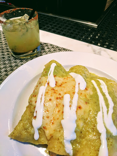 The food was awesome and the margarita was even better. This is a small place, and although hole in the wall, its very nice and new. The bar has limited seating but there is also outdoor seating. The paintings are awesome and decor elegant. I got their classic margarita. It was about 8-10 oz. A smaller margarita but very high quality and very well done. For food, I tried the chips and salsa. They like to push the guacamole but the chips and salsa are great. The green salsa is more spicy so beware if you arent into spicy. I had the enchiladas poblanas. They were pretty good. Came out hot and fresh like the chips. They were smothered with the mole sauce which was the strong mole sauce one would expect. The queso was light on top, I was disappointed as I have a special place in my heart for queso but the flavor was excellent and the queso amount turned out to be perfect and reveal the other flavors better. The rice and beans on the side were standard. I didnt eat much of them and focused on the good stuff. My service was slow but overall this food was great. I would go back.