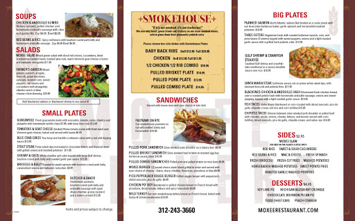 Everyones doing craft beers these days, but this place rounds it out. If you like small batch beers, great food and deluxe cocktails, Moxee & Mad Mouse is well worth getting to know. The small plates -- like shrimp and grits, brussels sprouts and pork belly, fried green tomatoes, and steak tips marinated in chocolate bitters and stout -- are big enough to share, or sate you if you feel like eating light, or you can double up to get some of everything. On the big plates, the planked salmon is really good -- it came with sauteed spinach and creamy mashed potatoes. Their fish n chips uses house-made kolsh in the batter. The cod is super fresh and my 5yo loves it. Last time she and a friend shared it with a side of the mac and cheese (though they do have a kids menu, too). The BBQ is smoked in-house -- my dad loves the chicken and rib combo. This place is pretty easy for the gluten-free (try the salmon, pulled pork and nearly anything BBQ, red beans and rice, salads and the tasty vegetarian bean dish) and the kitchen can adapt some dishes, too, which I appreciate as a g/f diner. Just ask. My family has eaten here many times, and Ive met friends for cocktails here. (Try the house-made egg nog. Holy moly!) So glad this place is here.