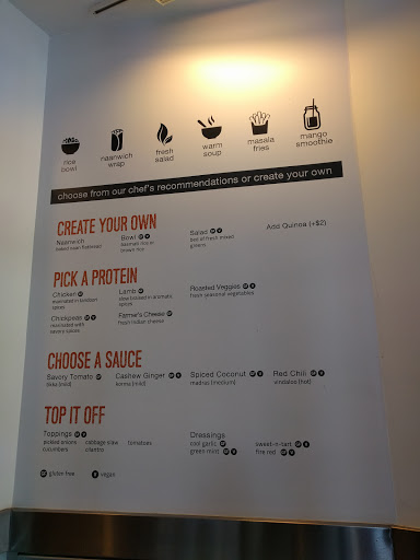 Good options, lots of sauces to mix together, fan of the coconut Madras sauce. You can get out for about 8 bucks, bowl of food like chipotle burrito bowl, toss in some veggies at the end and get a side of naan. I like this place fine but wish theyd up the vegetable options.