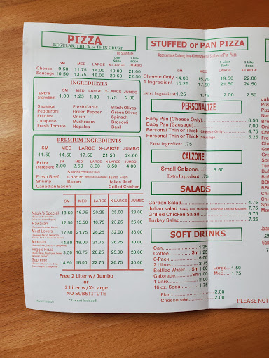 Es la mejor pizza en chicago! porque la prepara un hombre maravilloso, el mejor pizzero que tiene Naples de la 46. es un hombre honesto, trabajador, y dedicado si el esta travajando ai pueden estar seguros que su pizza sera la mejor y estara lista en el menor tiempo posible para el. Avese el ni come para hacerles sus pizzas, y siempre les ba a atender con una sonrriza y amabilidad. Gracias a Dios y a doña Mary la dueña de ese Negocio que ahora le da empleo al mejor travajador que conosco. Y gracias a los que lo saben reconocer y aveses le dejan propina. A mi amado esposo!